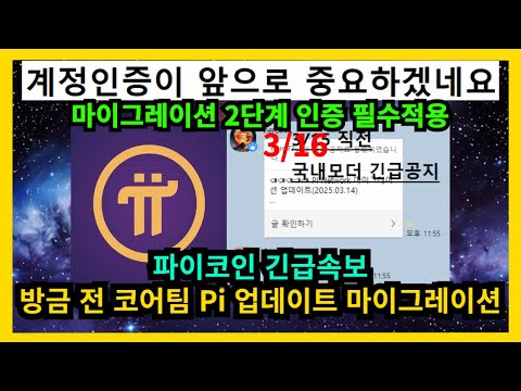 [속보] 파이코인 긴급속보 방금 전 코어팀 Pi 업데이트 마이그레이션 관련 공지 (2중인증 2FA 관련)