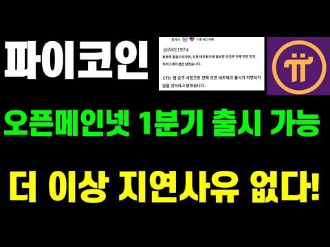 파이코인 오픈메인넷 1분기 출시 가능..더 이상 지연사유 없다!