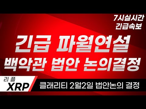 [ 리플 XRP 엑스알피 ] 리플 7시 실시간 긴급 파월연설 , 백악관 클래리티 법안 논의결정 2월2일