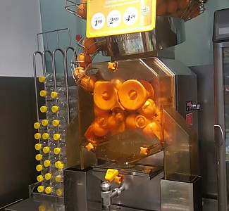 오렌지 주스 메이커 (착즙기)페트병 사이즈 고른 뒤,즉석으로 오렌지를 착즙해서네 맞아요 유럽에선 이런게 동네…