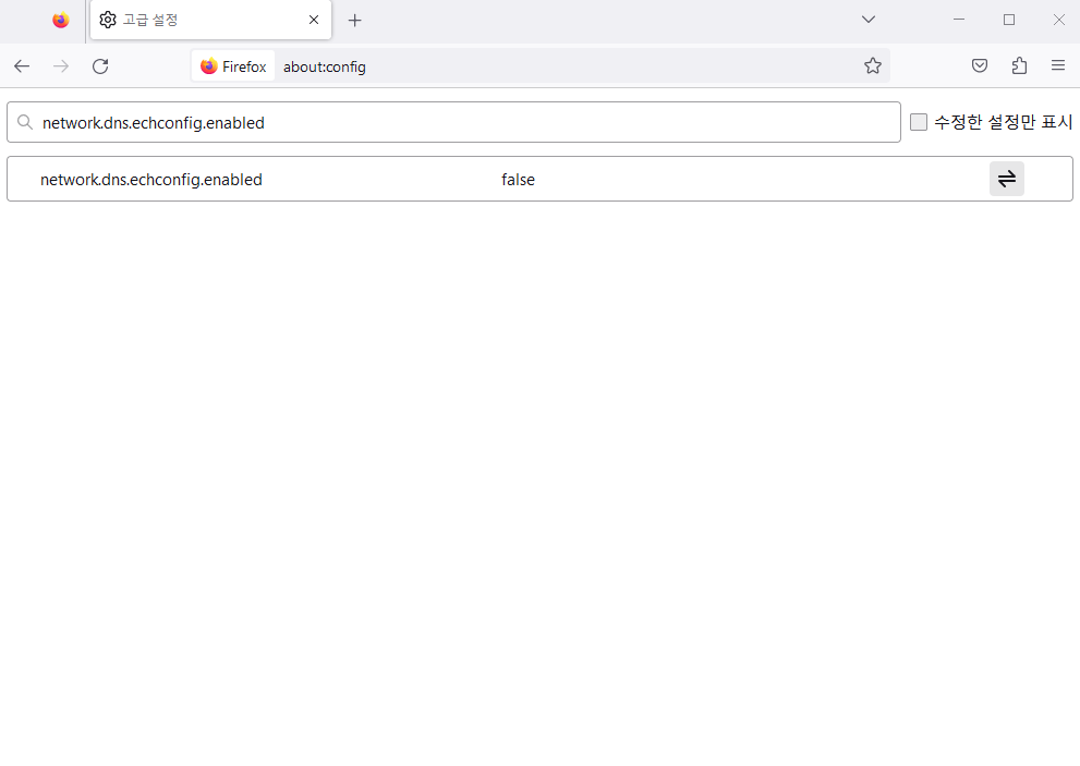 network.dns.echconfig.enabled : true (선택)3. 검색창에서 : network.dns.echconfig.enabled