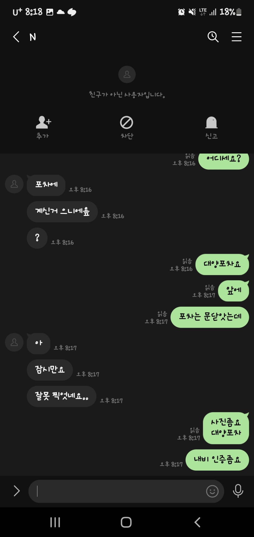 도착햇다하고 나가보니 주소를 잘못찍엇다고하더니 잠수 입니다