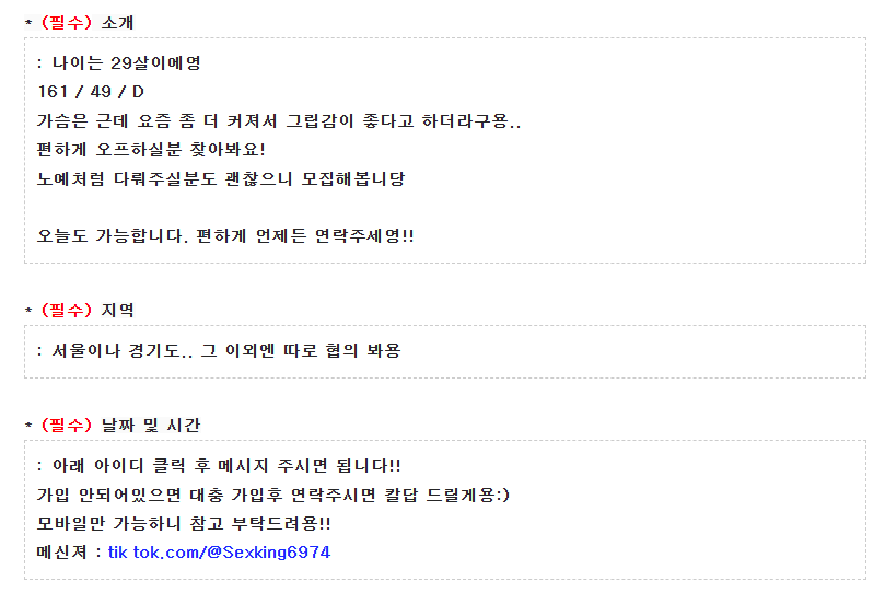 사건내역 : 초대남 모집글인척 하면서 틱톡 포인트 벌려고 사기 행위