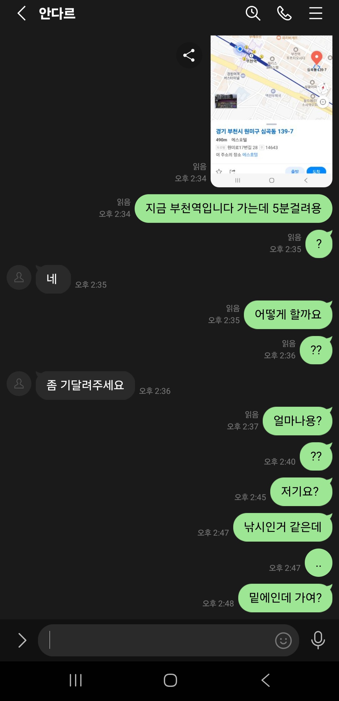 사건내역 : 부천역 인근 호텔로 오라더니 선입금 요구