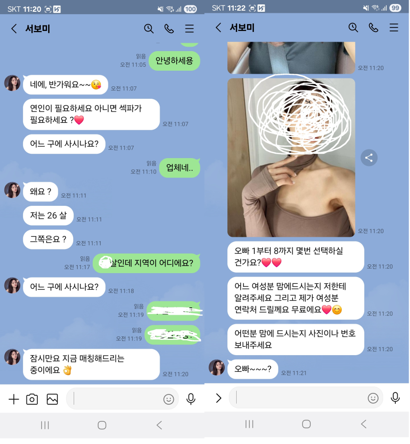 사건내역 : 라인으로 유도 여자들 사진보내주고 같은지역이라 하고 데이트카드 만들라고 유도