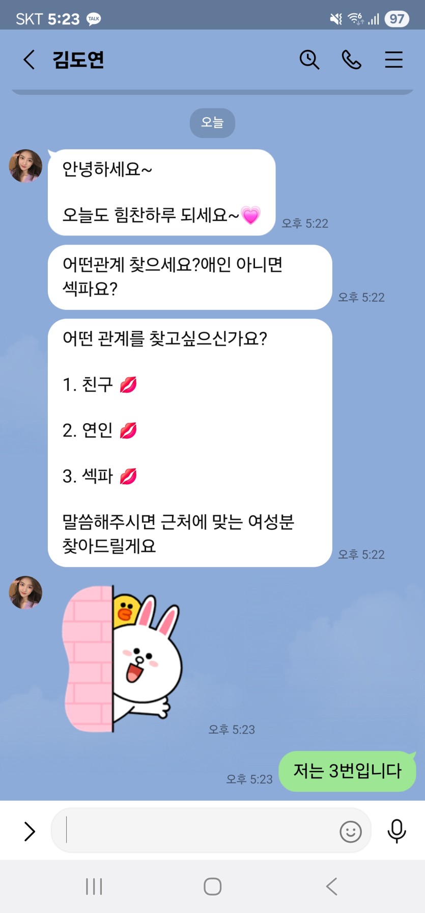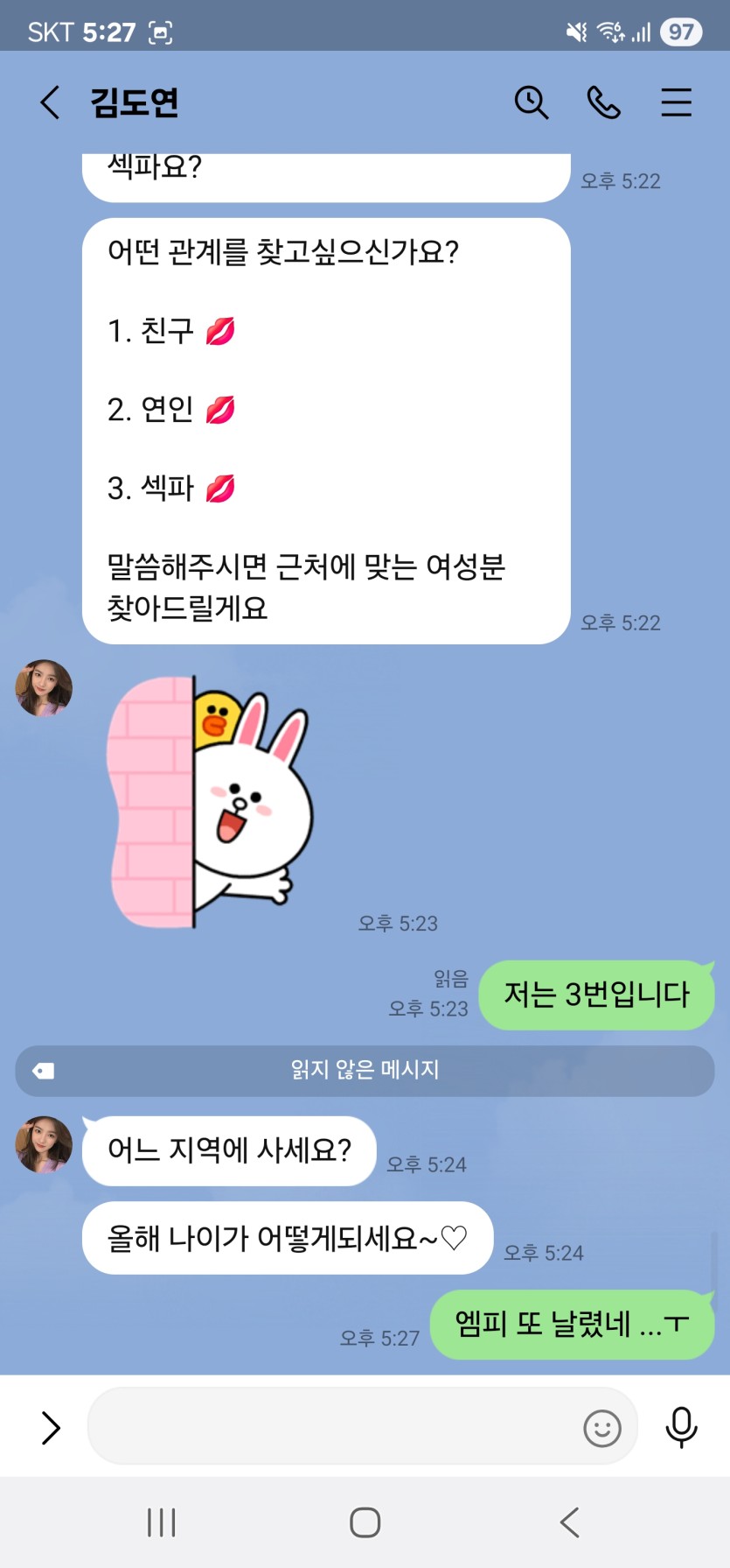 사건내역 : 다른 메신져로 유도 라인 , 텔레 등으로 유도해서 금전요구