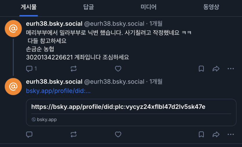 [주의] 사기 계좌 - 농협(손금순) 3020134226621